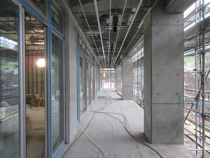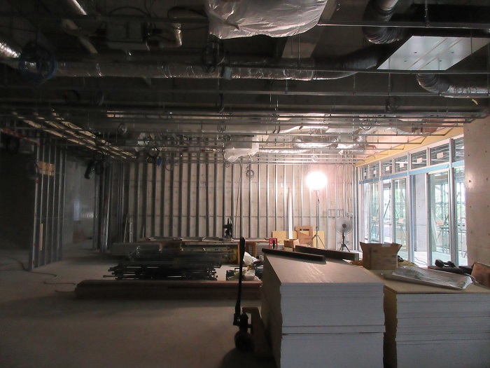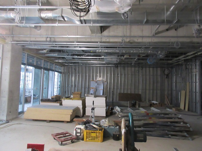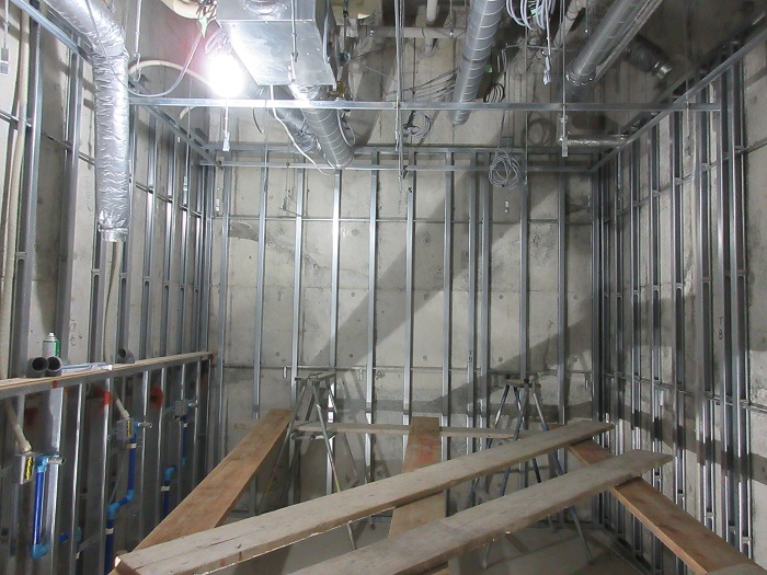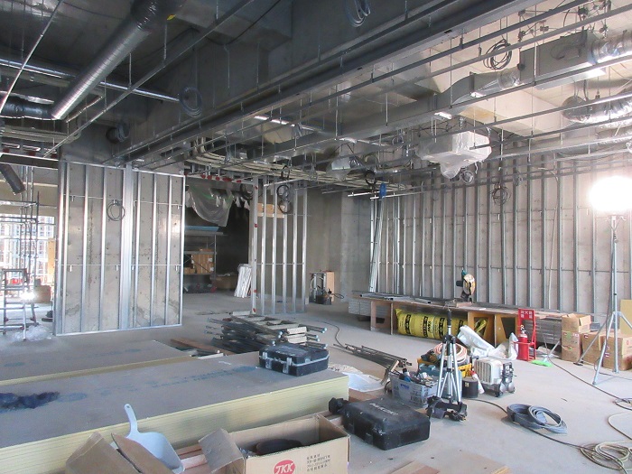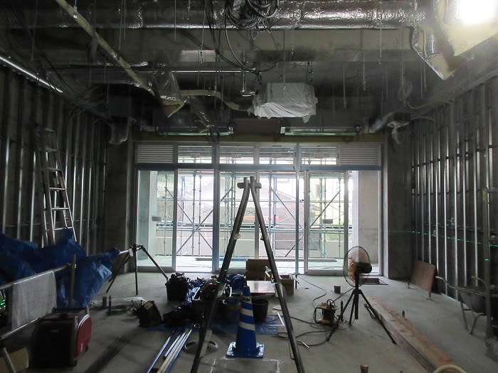 1階の会議室、調理室、トイレなどの軽天下地中です。