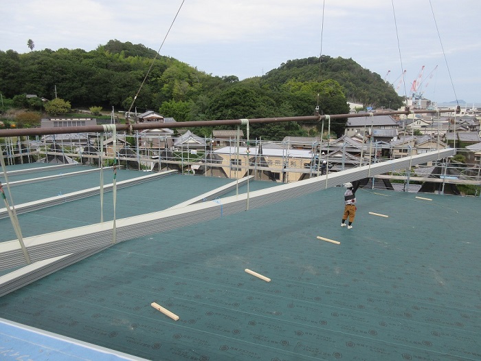 What’s New屋根ガルバリウム鋼板2025.09.26What’s NewPrivate Blog「公民館・体育館」の屋根ガルバリウム鋼板は、22mの長さのため現場で成型してレッカーで釣り上げています。 3階梁の配筋検査前の記事 鉄骨建方次の記事