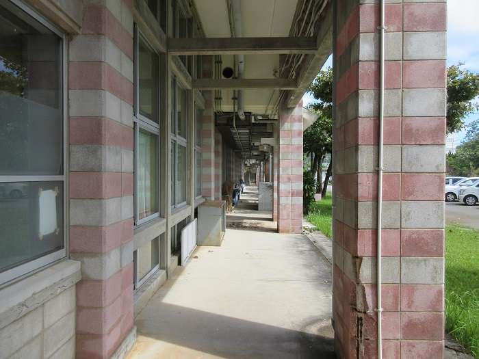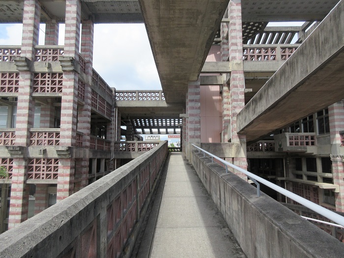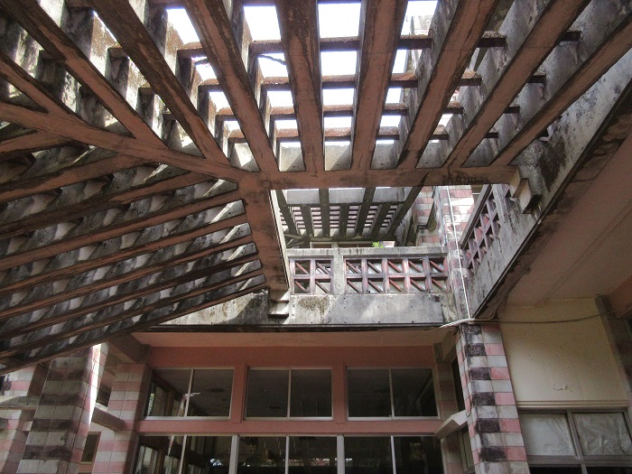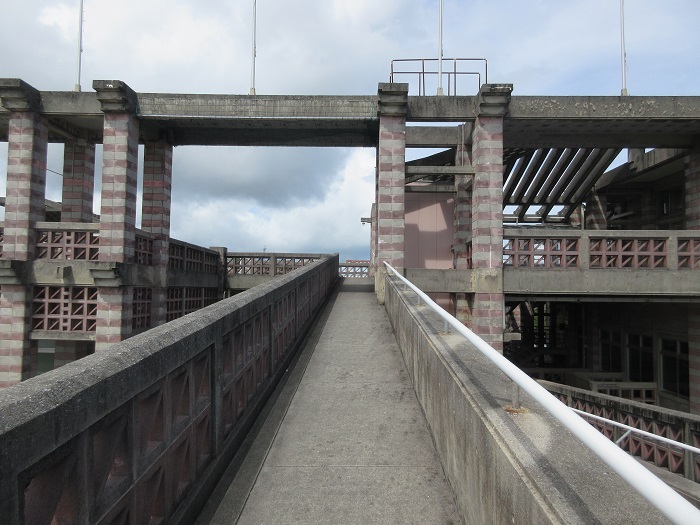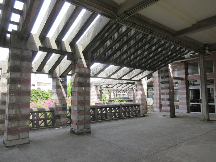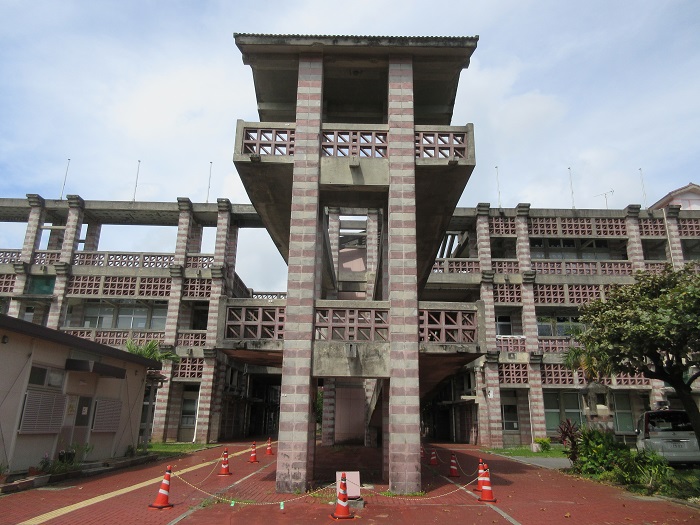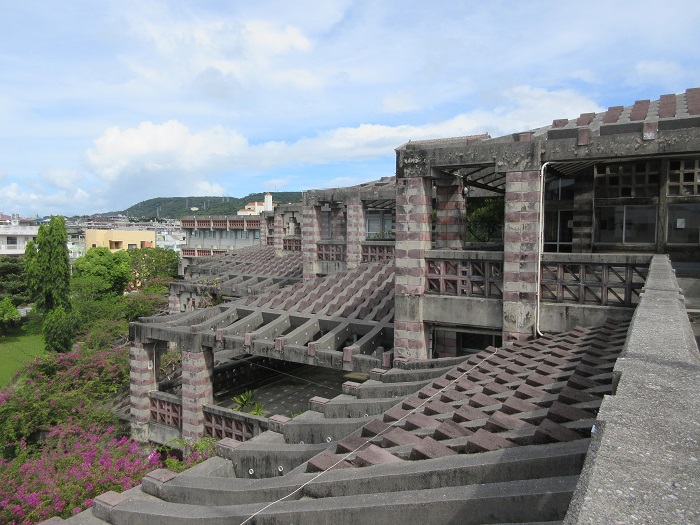 9月の連休には久しぶりに沖縄へ「名護市庁舎」(設計:象設計集団)44年前に建てられ建築学会賞も受賞しています。40年ぶりの見学で当時の記憶を思い返しながら、沖縄の気候風土を考え広場側には日除けの「アサギテラス」や花ブロックのスクリーンで日差しを調整し、完成当時はエアコンはなく建物内に風のみちをつくり、それらが独特な外観となっています。現在はエアコンも設置され飾られていたシーサーも撤去されていました。