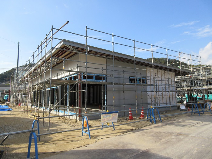 What’s New外壁アルミパネル取付け2025.11.19What’s NewPrivate Blog「コンビニ棟」は屋根ガルバリウム鋼板タテハゼ葺き~外壁の金属サイディング張りが進み、「郵便局棟」では外壁タイル貼り~アルミパネル張りの施工中です。 外壁北面・西面の吹付け前の記事 壁・天井の軽鉄工事次の記事