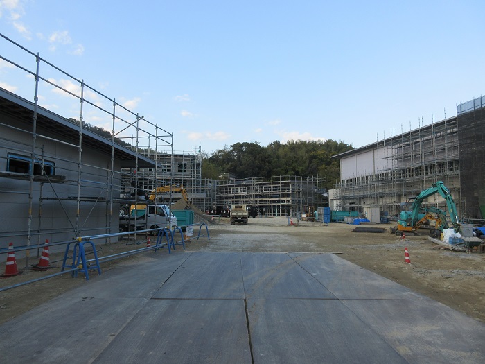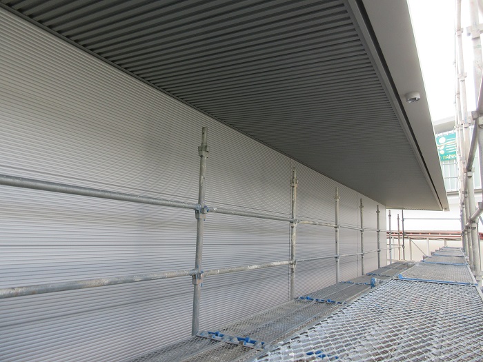 What’s New軒天のスパンドレル張り2025.11.28What’s NewPrivate Blog「コンビニ棟」は軒天のガルバリウム鋼板スパンドレル張り~井戸水の受水槽の目隠し下地の鉄骨組み~「ROOF TERRACE」の基礎工事も一部が始まっています。 内部の塗装工事前の記事