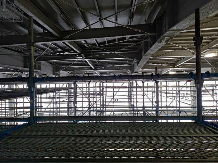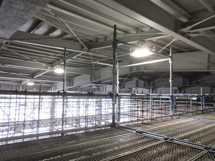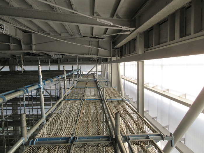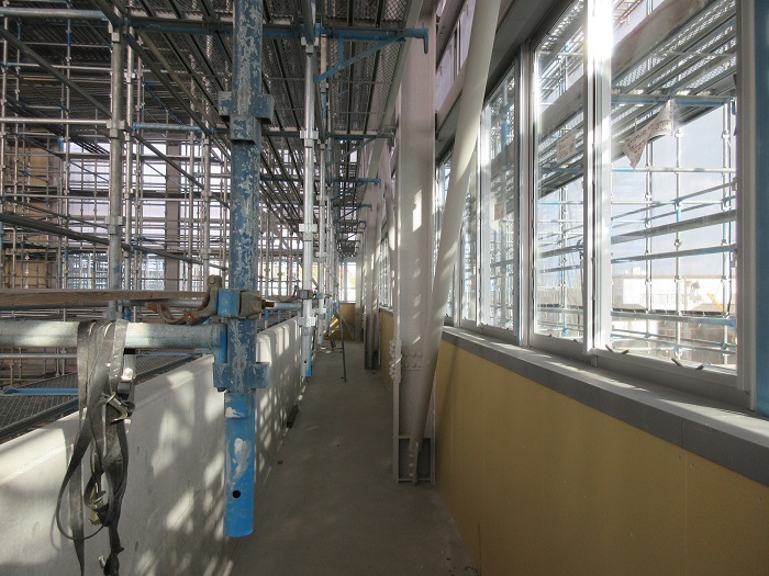 What’s New体育館の内部足場解体前検査2025.11.29What’s NewPrivate Blog「体育館」の内部足場解体前検査がありました。鉄骨の塗装や照明器具取付けシナ合板張りが終わっています。 軒天のスパンドレル張り前の記事