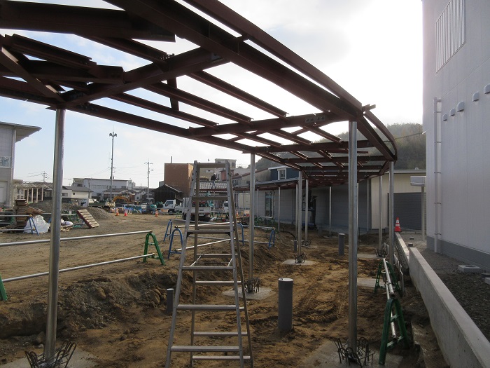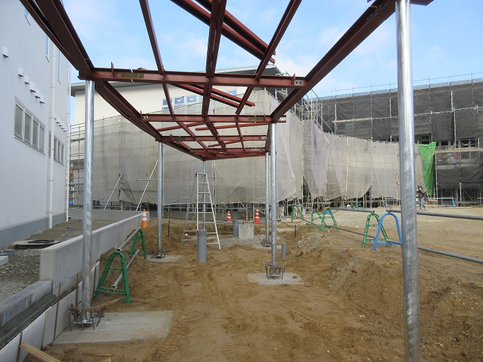 What’s NewROOF TERRACEの鉄骨2025.12.20What’s NewPrivate Blog「コンビニ棟」側の「ROOF TERRACE」の鉄骨が組み上がっています。 体育館の鋼製床組み前の記事
