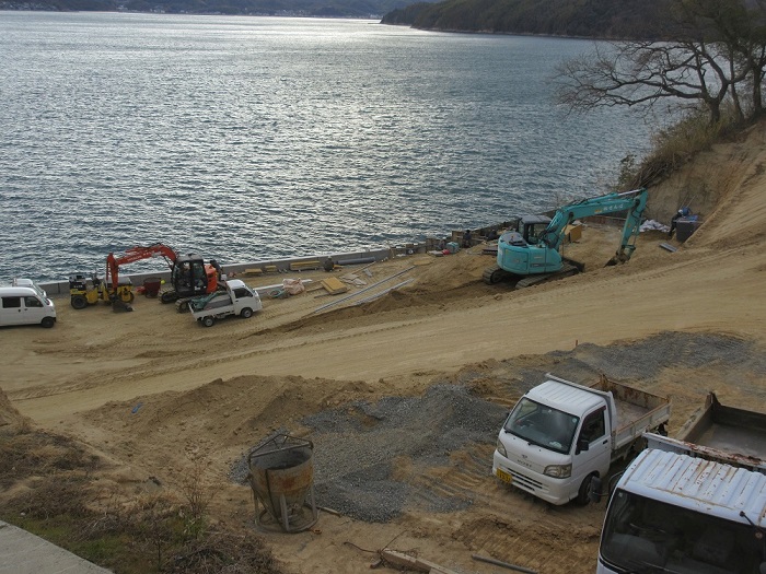 What’s New造成工事2026.01.23What’s NewPrivate Blog「沖浦オーベルジュ」の造成工事は順調に進み、先端敷地のボーリング調査も行っています。 玄関・ポーチのタイル貼り前の記事 ROOF TERRACEの天井下地次の記事