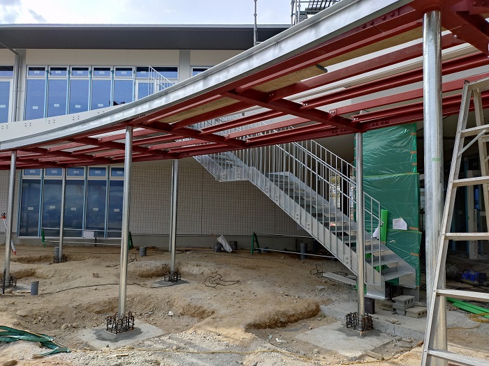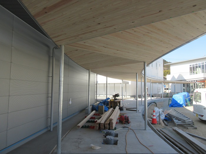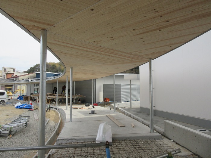 What’s NewROOF TERRACEの軒天杉板張り2026.01.30What’s NewPrivate Blog「ROOF TERRACE」軒天の杉板をランダムに張り分けています。 「郵便局棟」前の「ROOF TERRACE」の鉄骨と屋外鉄骨階段の設置工事中です。 天井の木ルーバー前の記事
