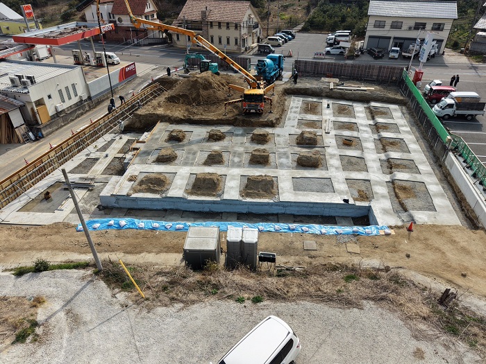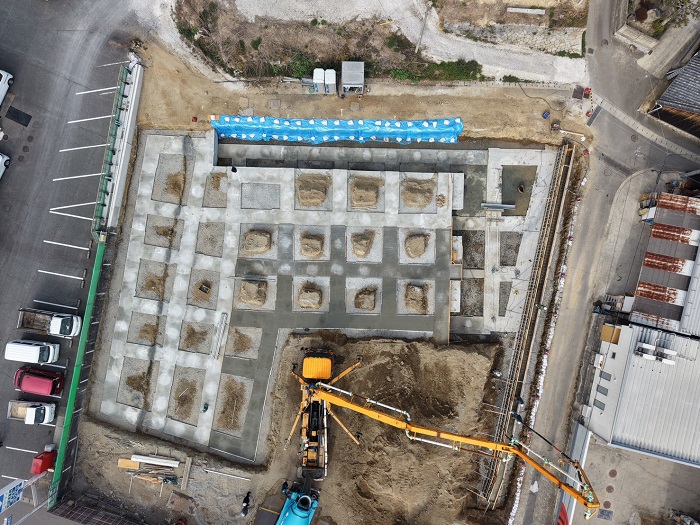 What’s New木浦オフィスプロジェクト ドローン現場写真2026.02.13What’s NewPrivate Blog「木浦オフィスプロジェクト」のドローン現場写真が届きました。 現場では掘方が終わり捨コン~東側擁壁のコンクリート打設中です。 駐車場の折版屋根前の記事