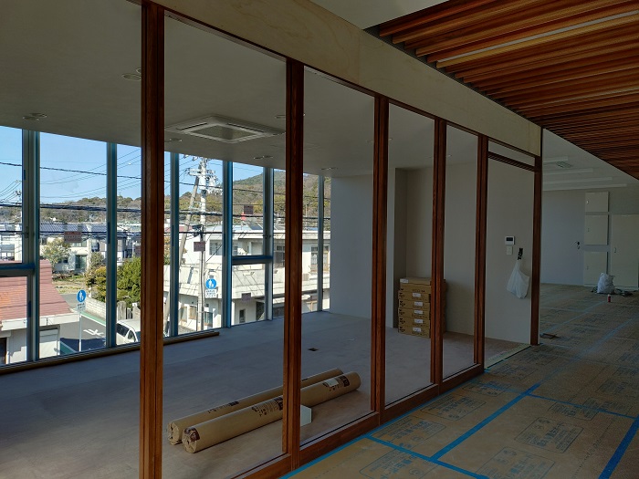 What’s New玄関ポーチ・スロープ2026.02.20What’s NewPrivate Blog「川之江オフィスプロジェクト」は玄関ポーチの階段・スロープの配筋、型枠工事が始まっています。室内では2階事務室の床フローリン張り、壁クロス張りが終わり~1階はパテ処理、クロス張り、TSボード張りなどが進んでいます。 歩行者進入路前の記事