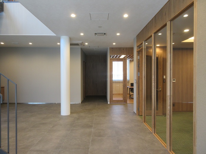 What’s New川之江オフィスプロジェクト2026.03.18What’s NewPrivate Blog「川之江オフィスプロジェクト」は建物本体工事が終わり~仮使用検査~椅子やテーブルなどの搬入も終り室内の撮影も行いました。これから既存建物の解体と屋外工事が始まります。 基礎コンクリート打設前の記事